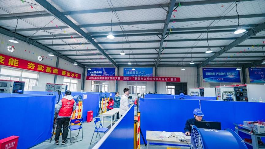1月11日至12日,由安徽省教育厅、安徽省工业和信息化厅、安徽省人力资源和社会保障厅以及安徽省残疾人联合会主办,安徽机电职业技术学院承办的2024年“中银杯”安徽省职业院校技能大赛(高职组)“智能电梯装配调试与检验”和“新型电力系统技术与应用”两个赛项在学校电气工程学院举行。来自全省20所院校的31支代表队共81名参赛选手同台竞技、展示风采。