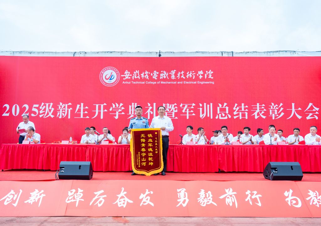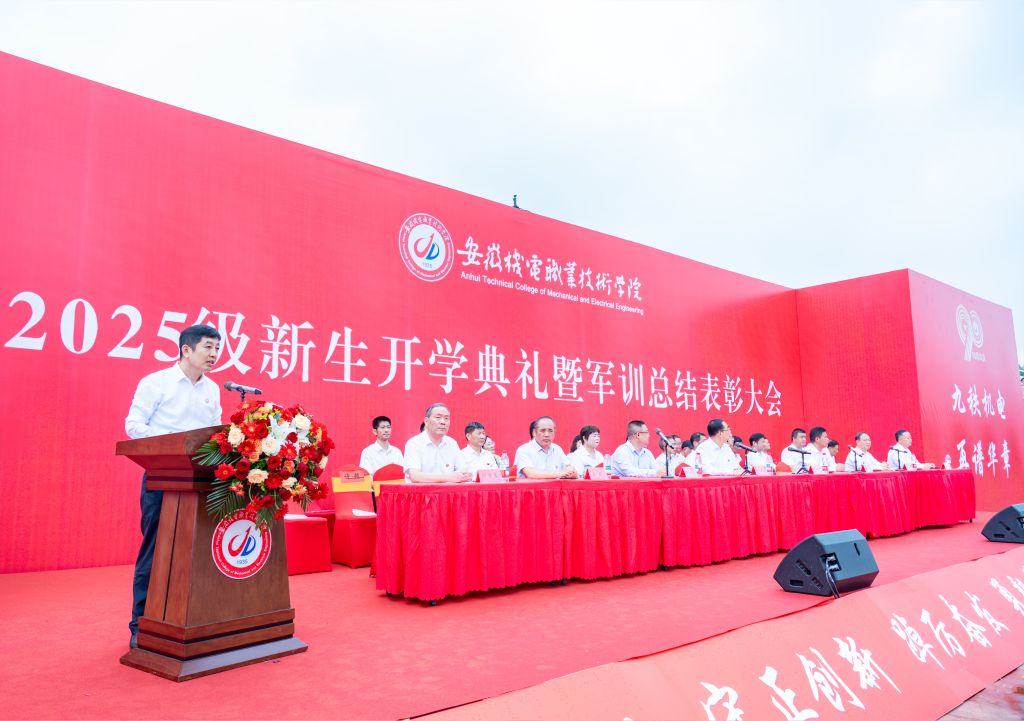 9月30日上午,学校隆重举行2025级新生开学典礼暨军训总结表彰大会。学校党政领导、弋江区人武部领导、各二级学院和相关职能部门负责人、优秀校友代表、2025级全体新生及新生辅导员参加,大会由党委副书记姜绳主持。