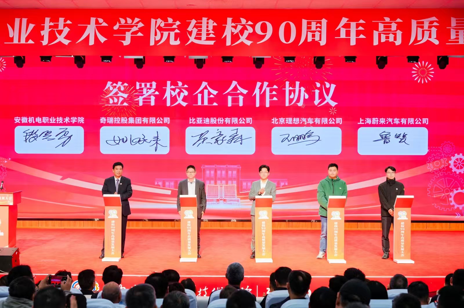 学校与奇瑞控股集团有限公司、比亚迪股份有限公司、北京理想汽车有限公司、上海蔚来汽车有限公司签署校企合作协议。