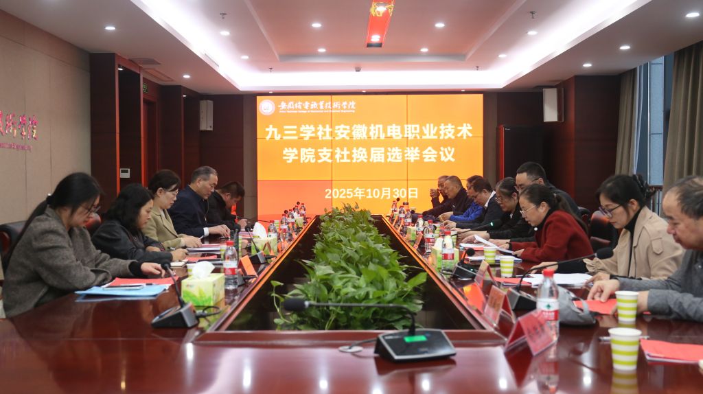 10月30日下午,九三学社安徽机电职业技术学院支社组织召开换届选举大会。芜湖市人大常委会副主任、九三学社芜湖市委主委王芳,学校党委副书记姜绳,九三学社芜湖市委组宣部部长鲁燕、九三学社芜湖市委组宣部伍宗斌、胡琼洁出席会议,会议由靳凤主持,九三学社安徽机电职业技术学院支社社员参加。