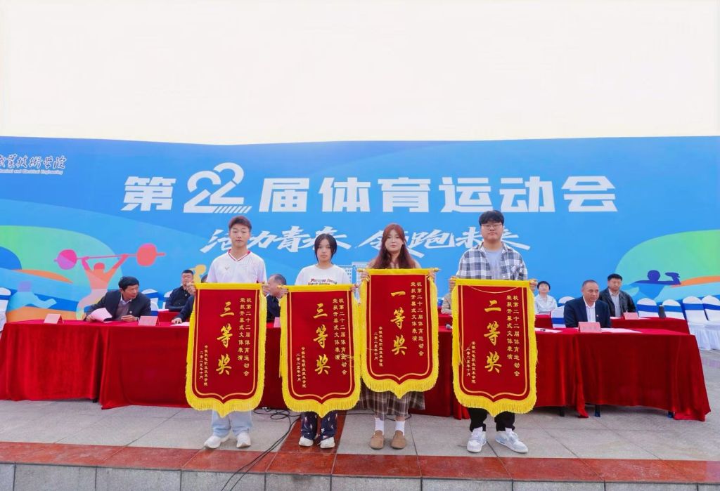 随后,纪委书记高道友宣布运动会团体奖、体育道德风尚奖名单,副院长张强宣布运动会优秀组织奖、文体表演获奖名单。伴着欢快的音乐,与会领导分别为获奖集体颁奖。