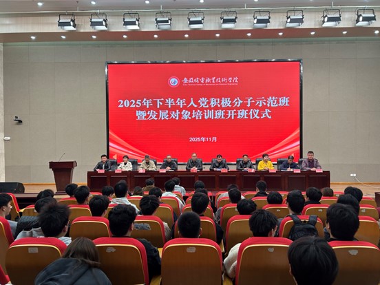 近日,安徽机电职业技术学院2025年下半年入党积极分子示范班暨发展对象培训班开班仪式在雨耕楼二楼报告厅举行。党委副书记、党校校长姜绳出席并作动员讲话,各二级学院党总支书记、分党校负责人、学生党支部书记及全体参训学员参会,开班仪式由组织人事处许超主持。