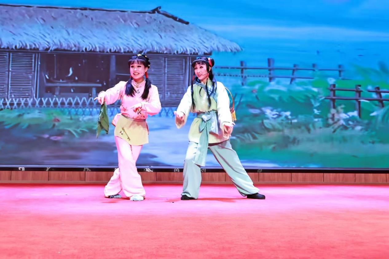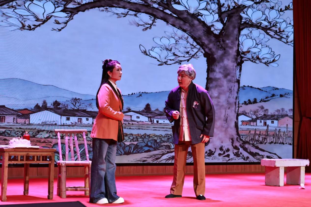 演出在现代小戏《当你老了》中温情启幕,该剧以细腻动人的情节铺展,深刻传递出中华民族孝亲敬老的传统美德;《女驸马》经典唱段《谁料皇榜中状元》旋律一响,便唤起观众熟悉的戏曲记忆,引发强烈共鸣;《蓝桥会》选段以质朴的表演展现劳动生活的生动画面,洋溢着朴实的生活气息;黄梅经典小戏《打猪草》以脍炙人口的“对花调”展现乡村童趣与邻里温情,曲调婉转,意蕴悠长;《西楼会》选段《小书童一句话》巧妙融入现代表演手法,赋予传统剧目崭新的艺术活力;《碧玉簪》选段《夜来灯花结双蕊》旋律明快、情感饱满,唱出人物内心的细腻变化。国家一级演员仝婷压轴献唱《牛郎织女》选段《到底人间欢乐多》与《龙女》选段《一月思念》,其清丽圆润的嗓音、深情动人的演绎,将全场观众带入黄梅戏的优美意境,掌声不断,气氛热烈。