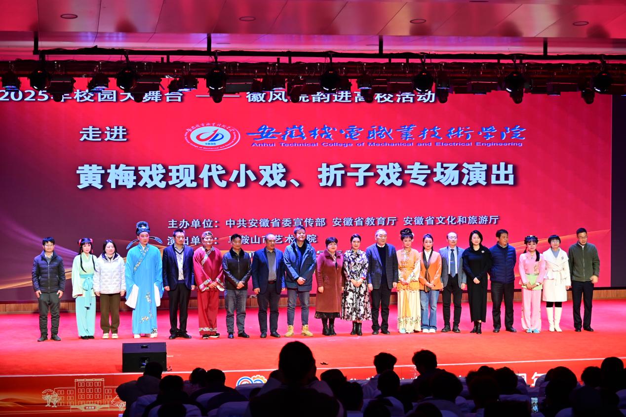 本次“徽风皖韵进校园”以黄梅戏剧走进高校为活动载体,通过传统戏曲的艺术表达,运用经典展演、美育实践、文化对话等形式的立体化呈现,架起文化传播与青年传承的有机桥梁。作为国家级非物质文化遗产,黄梅戏承载着独具安徽地方特色的文化基因与历史人文,不仅为机电师生近距离展示原汁原味的皖韵雅音,更是推进立德树人机制综合改革的“鲜活课堂”,助力青年学子在艺术审美中感知徽文化的精神内核,在中华优秀传统文化的参与体验中增强文化认同。
