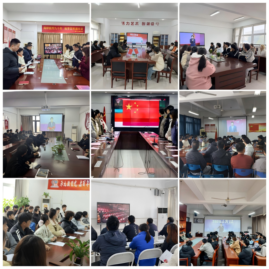 12月4日上午,学校师生共同参与2025年国家宪法日教育系统“宪法晨读”在线直播,由各二级学院和繁昌校区建设与管理办公室负责实施。各会场秩序井然,师生认真参与,共同诵读宪法条款,齐唱《宪法伴我们成长》歌曲,观看全国学生“学宪法 讲宪法”活动演讲比赛优秀选手展演,聆听教育部负责同志讲话,在庄重肃穆的氛围中共同感受宪法的权威与力量。