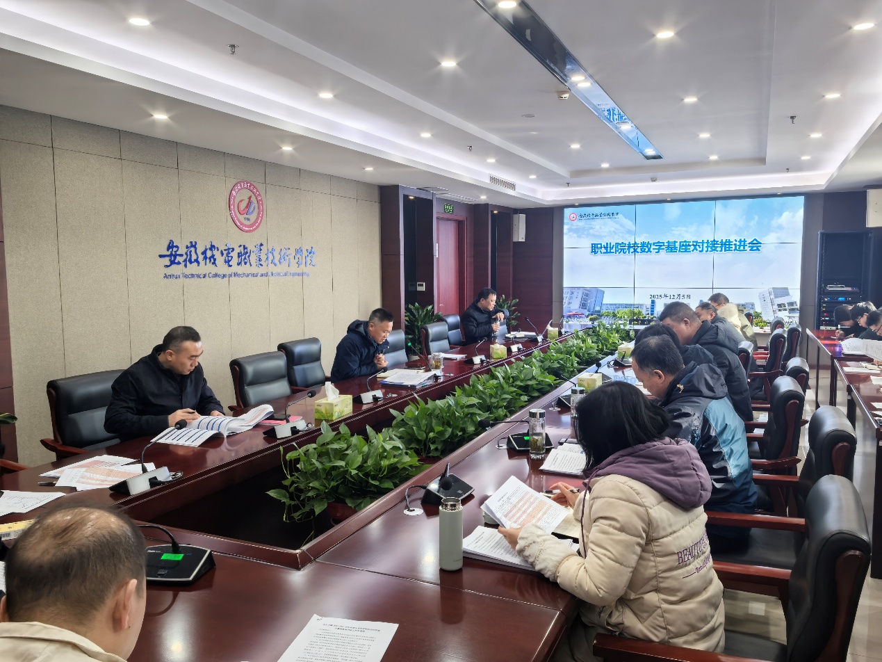 12月5日上午,学校在雨耕楼1109会议室召开教育部职业院校数字基座数据上报工作推进会,专题部署数据填报攻坚任务,全力冲刺教育部信息化标杆校建设。校党委委员、副院长张强出席会议并讲话,相关职能部门负责人和数据填报工作人员参加会议。