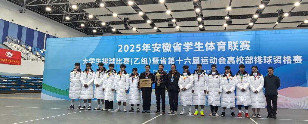 2025年安徽省大学生排球比赛(乙组)暨第十六届运动会高校部排球资格赛于12月7日在安徽职业技术大学圆满闭幕。我校学生男子排球队团结协作、奋勇拼搏,最终荣获全省亚军,充分展现了我校学子出色的竞技水平和昂扬向上的精神风貌。