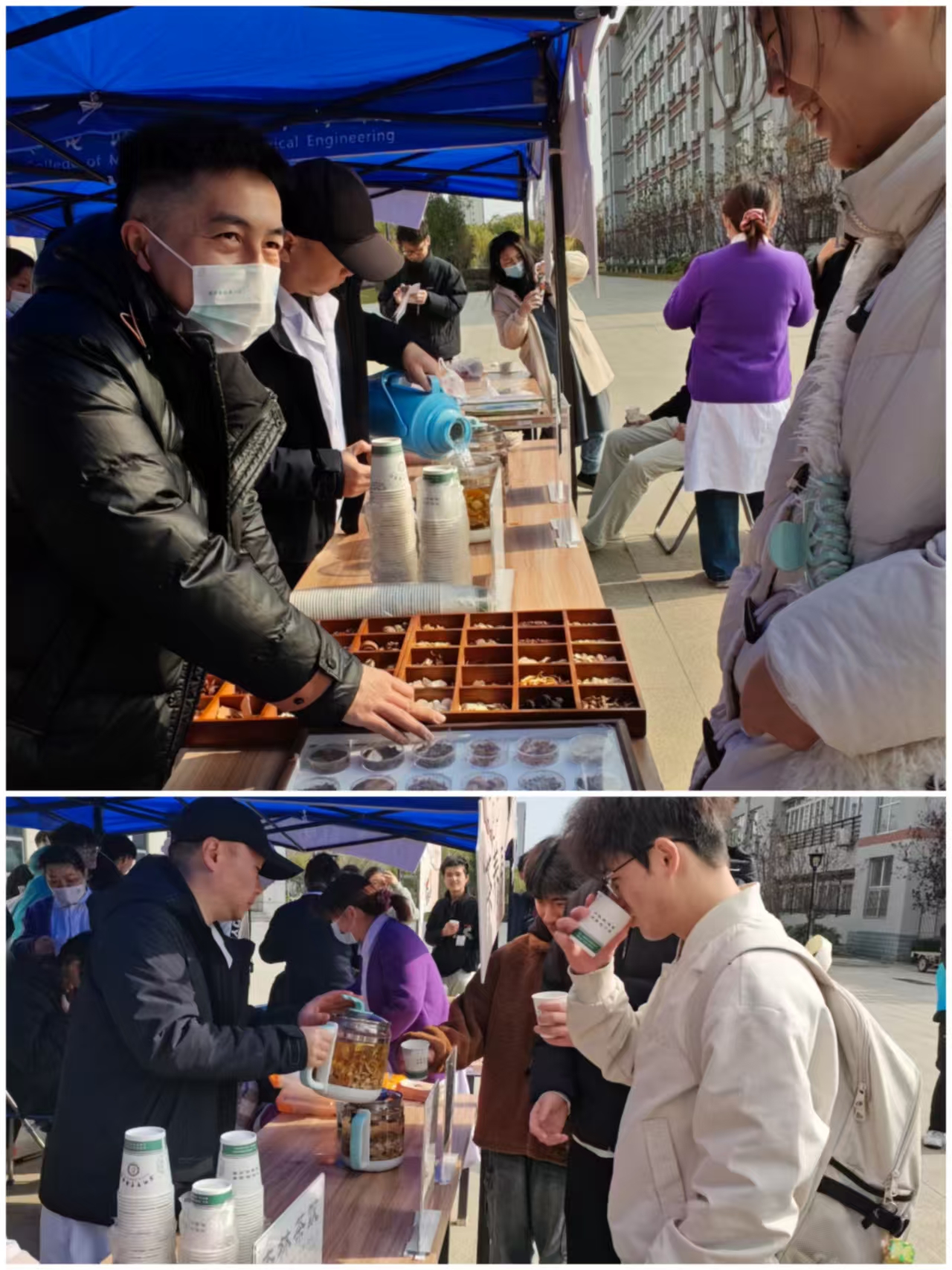 活动以“识百草•品药香•传国粹”为主线,通过中医诊疗、中药辨识、药茶品鉴等特色环节,为师生送上冬日健康关怀,吸引近300名师生参与。党委副书记姜绳、中医院工会主任王晖、后勤保障处处长王奇出席活动。