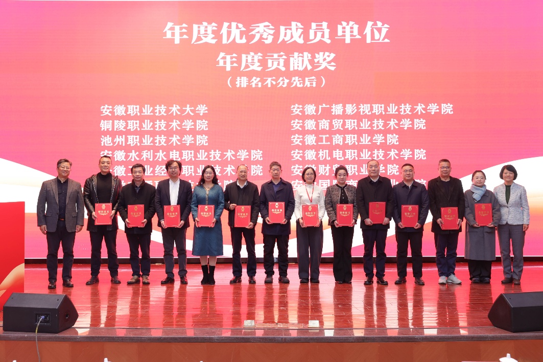 在本次年会上,我校作为联盟标准输出工作组组长单位,凭借在职业教育标准研发与国际化推广方面的突出贡献,荣获“2025年度贡献奖”。这一荣誉充分肯定了我校在推动安徽职业教育标准走向国际过程中发挥的重要作用。
