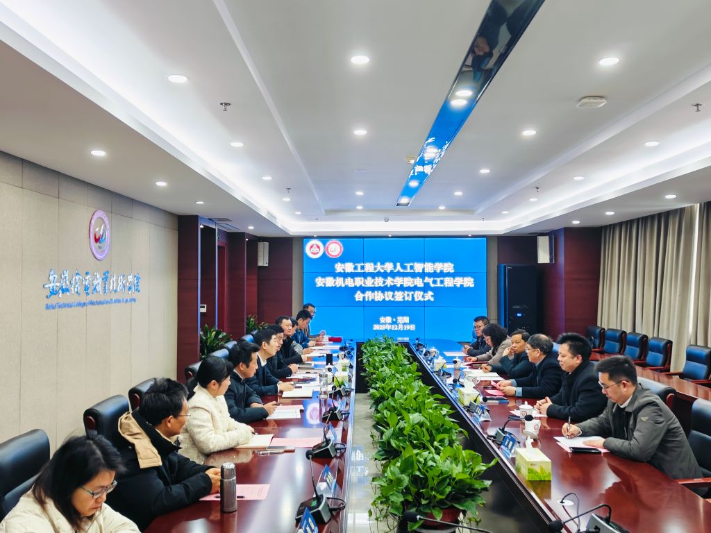 2025年12月19日下午,我校电气工程学院与安徽工程大学人工智能学院签订合作协议仪式在雨耕楼1109会议室顺利举行。安徽工程大学副校长王成军率人工智能学院党政负责人与教师代表出席;院长冉昆玉、副院长段贤勇及电气工程学院党政班子、专业负责人、教师代表共同参会。签订合作协议仪式由段贤勇主持。