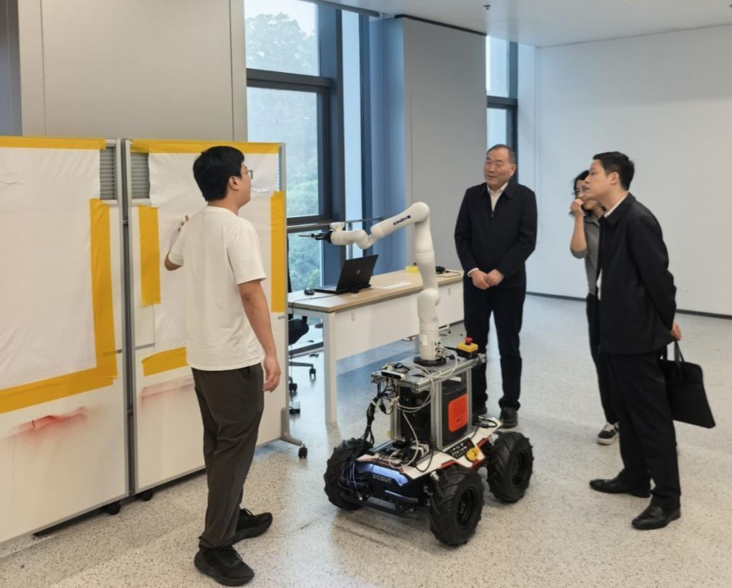 鹏城实验室大模型创新应用中心主任赵子莹、深思有形(深圳)科技有限公司总经理肖骏峰等热情接待了调研团队,详细介绍了各自在前沿技术研发、核心产品迭代、市场布局拓展等方面的发展历程与成效,重点分享了在具身智能机器人领域的技术突破、应用场景及产教融合探索实践,并陪同参观了科研创新平台与产品测试车间,直观展现了企业的技术研发实力与产业发展前景。