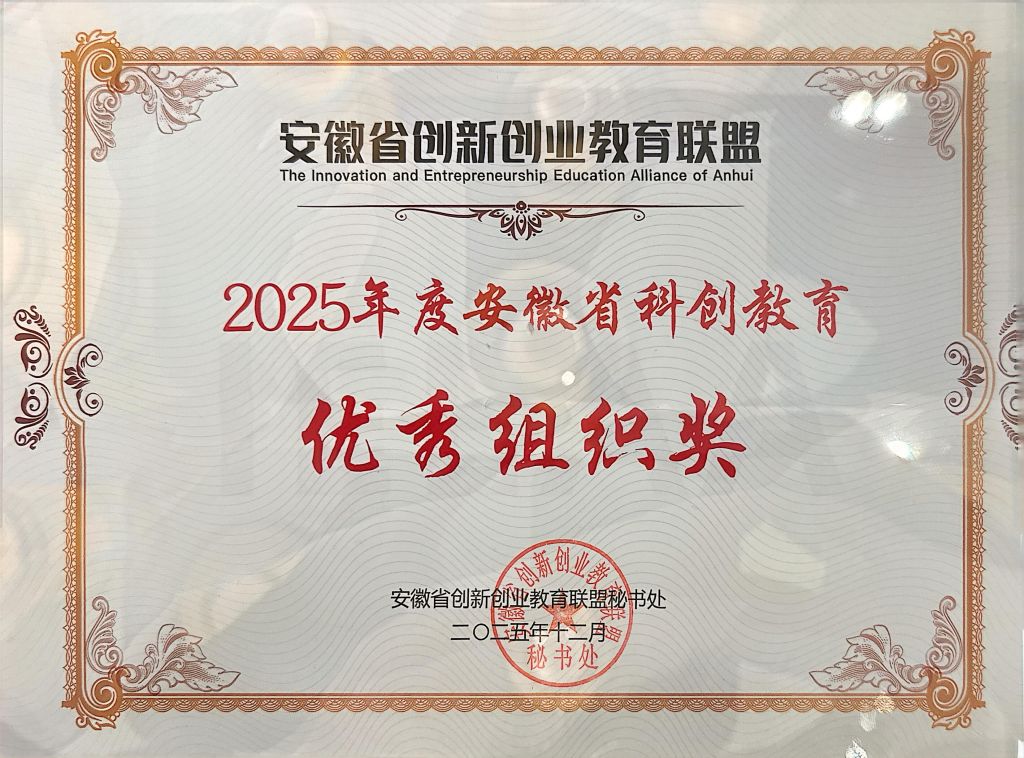 12月20日至21日,第二届 “安徽省创新创业教育论坛”暨2025年安徽省创新创业教育联盟年会在合肥隆重举办,来自联盟成员单位的200余名领导、专家、主管部门负责人等出席活动。本次会议审议并正式公布了2025年度全省科创教育系列评选结果,我校凭借科创教育领域的系统布局与突出成效,荣获2025年度安徽省科创教育“优秀组织奖”。这一荣誉的取得,是对学校在双创教育领域持续深耕、精准对接地方产业需求所做努力的高度赞誉与充分认可。