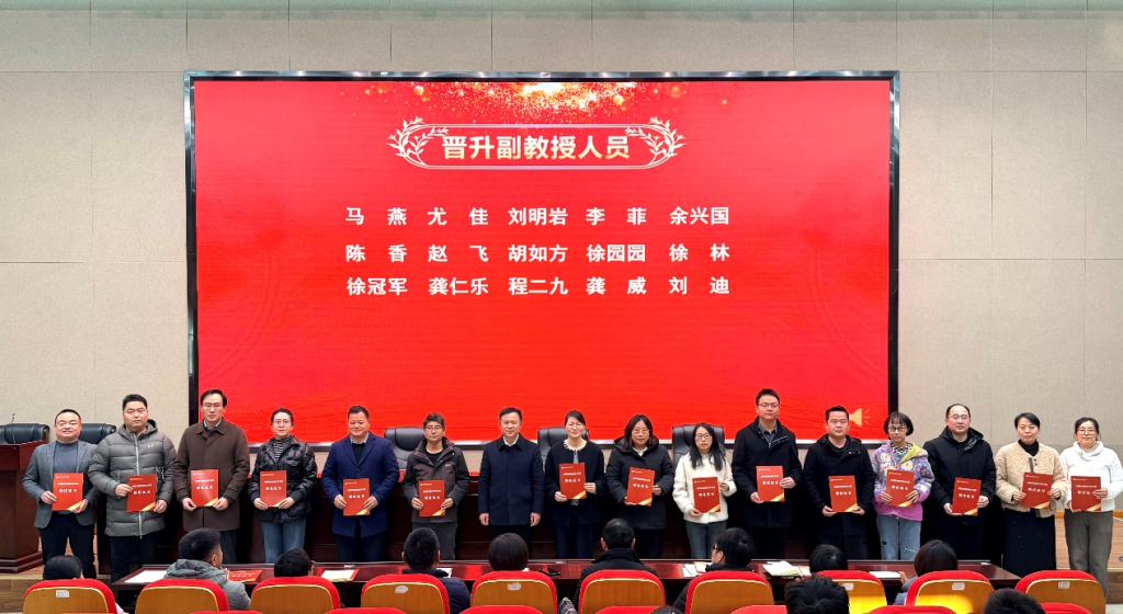 为进一步强化尊师重教、崇尚学术的氛围,增强教师的责任感、使命感和荣誉感,1月13日下午,学校在雨耕楼二楼报告厅举行2025年度新晋职称人员聘任仪式。学校党委副书记、院长冉昆玉出席会议,2025年度职称晋升老师参加会议,会议由党委委员、副院长张强主持。