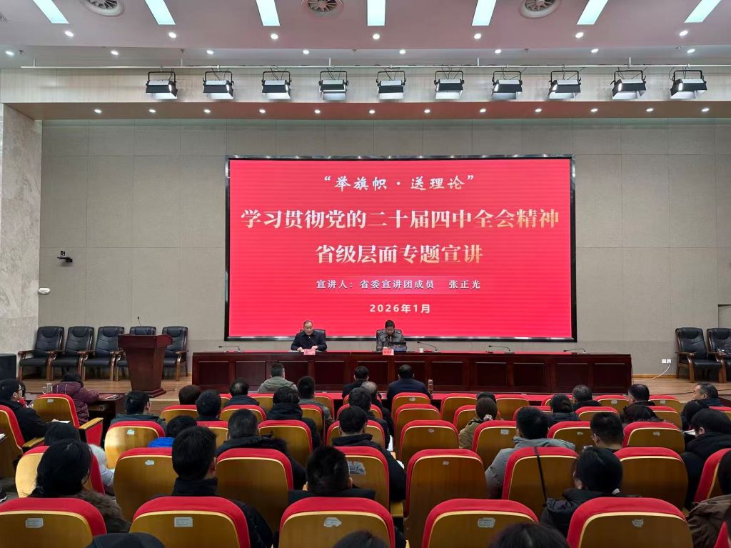 1月21日,“举旗帜·送理论”学习贯彻党的二十届四中全会精神省级层面专题宣讲活动在雨耕楼2楼报告厅举行。省委讲师团专家库成员、安徽师范大学马克思主义学院教授、博士生导师张正光作专题宣讲。校院两级理论学习中心组成员及师生代表150余人参会。宣讲会由院党委副书记姜绳主持。