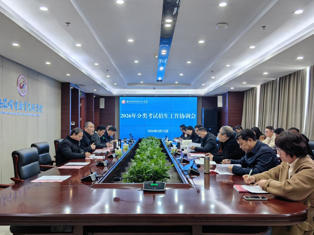 为深入贯彻落实省教育厅关于做好2026年高职院校分类考试招生工作的有关文件和会议精神,扎实推进学校2026年分类考试招生工作,3月12日,学校召开2026年分类考试招生工作部署协调会。党委副书记姜绳,党委委员、副院长段贤勇、张强,党委委员、纪委书记高道友出席会议,11个专项工作组负责人及相关工作人员参加会议。会议由姜绳主持。