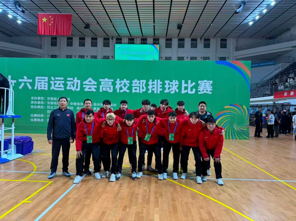 4月3日下午,安徽省第十六届运动会高校部排球比赛在安徽省萧县圆满落幕。本次比赛共有来自全省的43支代表队、700余名高校学生运动员参赛。经过激烈角逐,我校男子排球队凭借精湛的技艺、顽强的斗志和默契的协作,一路过关斩将,最终斩获季军,为学校赢得了荣誉。