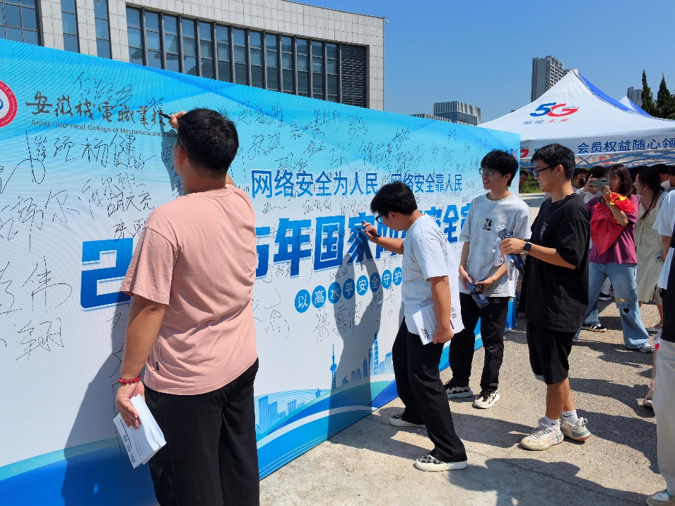 活动伊始,设在校园广场的网络安全宣传签名墙前便人头攒动。签名墙以“网络安全为人民,网络安全靠人民”为核心标语,营造出庄重而热烈的氛围。签名墙不仅成为校园里一道独特的风景线,更将网络安全的种子播撒在每一位师生心中。