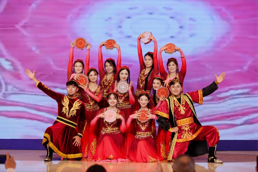 9 月 25 日,“芜”湖四海侨联五洲——2025 芜湖侨界迎中秋庆国庆茶话会在汉爵阳明大酒店成功举办。由我校侨联推荐的“石榴籽” 民族文化交流社团准备的舞蹈《丝路中秋 天山舞韵》在茶话会上惊艳全场,荣获最佳人气奖冠军。