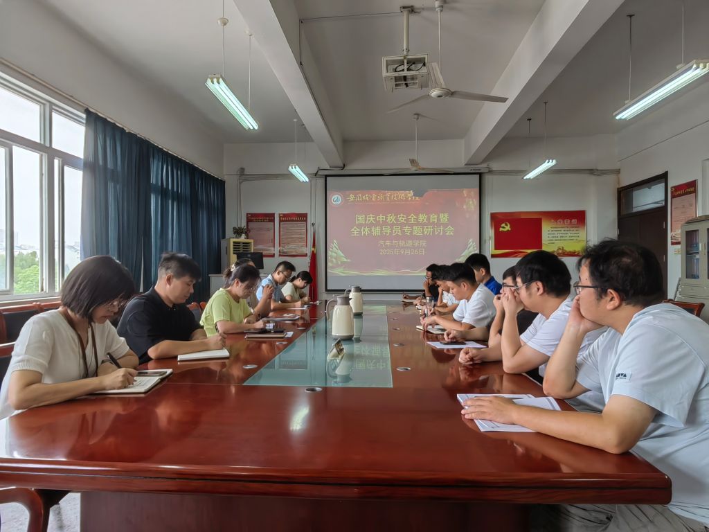 9月26日,汽车与轨道学院召开国庆中秋安全教育专题会议暨全体辅导员工作例会,学院党总支副书记李影、全体专兼职辅导员参会,围绕节日安全、思想教育、就业推进及辅导员日常管理展开部署。