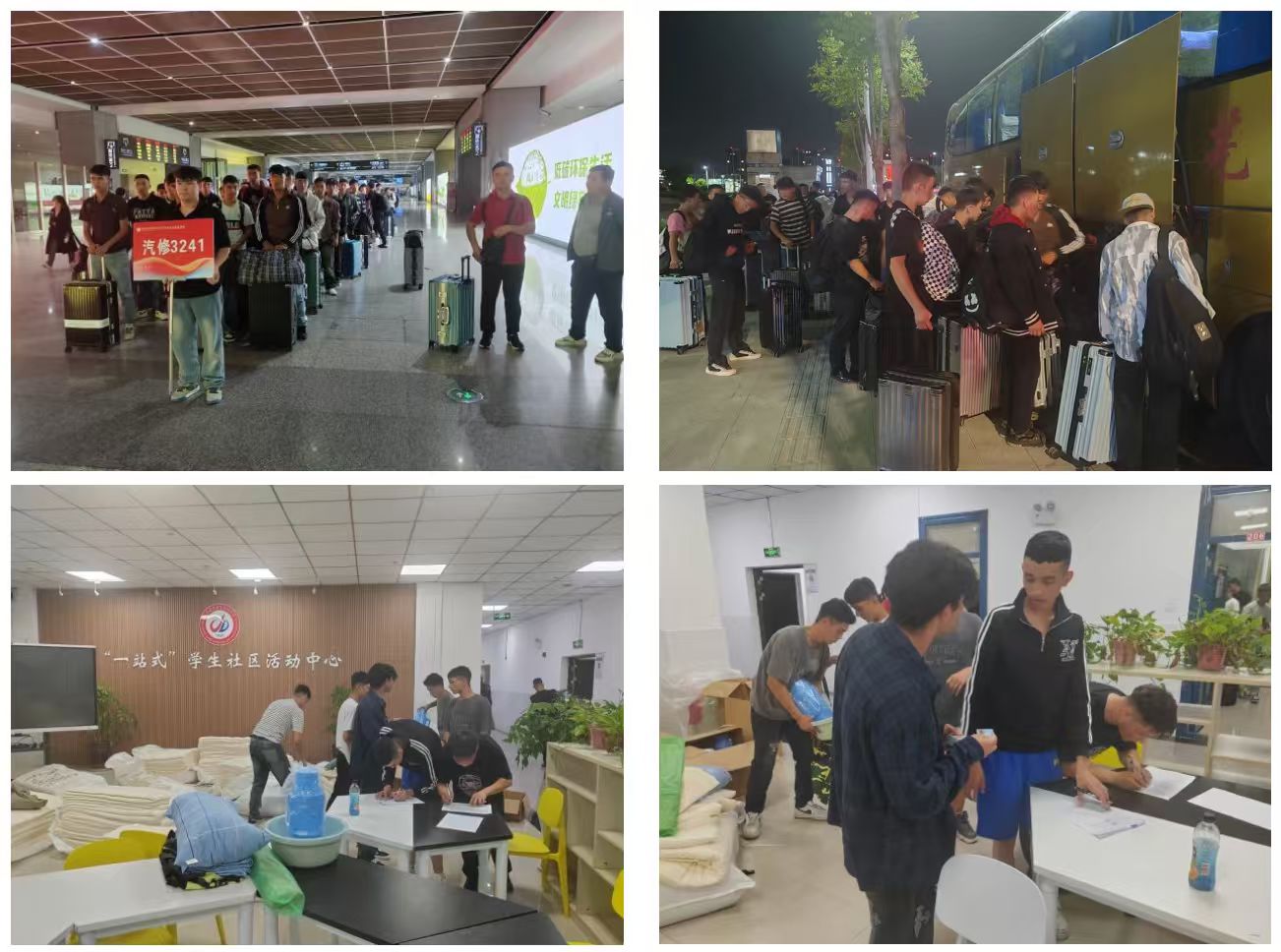 9月23日晚,皮山县中等职业学校50名同学在阿卜杜拉·麦麦提老师带领下抵达芜湖站。辅导员王飞率志愿者迎接,汽车与轨道学院党总支副书记李影组织志愿者完成物资分类等后勤保障。同学们在老师引导下有序领取物品、办理入住,顺利安顿。
