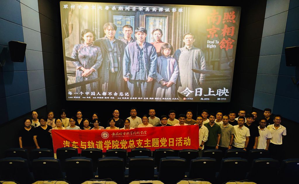 为持续推进党史学习教育常态化长效化,深化师德师风建设,并紧密结合教育强国建设三年行动计划立德树人机制综合改革试点院系建设要求,汽车与轨道学院党总支于9月28日下午组织全体教工党员和学生党员代表集中观看历史题材影片《南京照相馆》,以特殊形式的党日活动,铭记历史,吾辈自强,凝聚奋进力量。