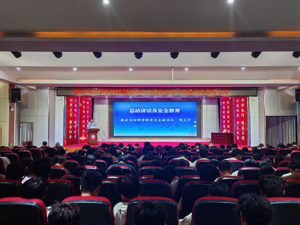 10月15日下午,航空与材料学院在学校明德楼1楼报告厅召开2026届毕业生岗位实习动员暨安全教育大会。学院党政领导、企业代表、实习指导老师、辅导员及2026届全体学生参会,会议由学院党总支副书记张朝兵主持。