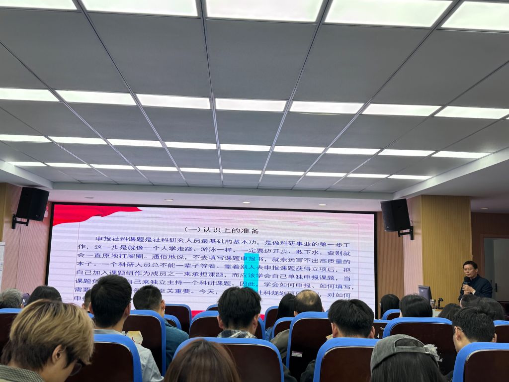 虞满华教授从哲社项目申报的前期准备、申报书撰写、后期工作等环节展开系统讲解。他结合自身项目申报相关课题的丰富经验,聚焦选题策略与内容撰写等核心部分,通过翔实案例和常见问题进行剖析,对申报过程中的重点与难点进行了深入探究和详细指导。最后,他提出四点建议:一要整体把握;二要谋早动早;三要聚智借智;四要反复打磨。