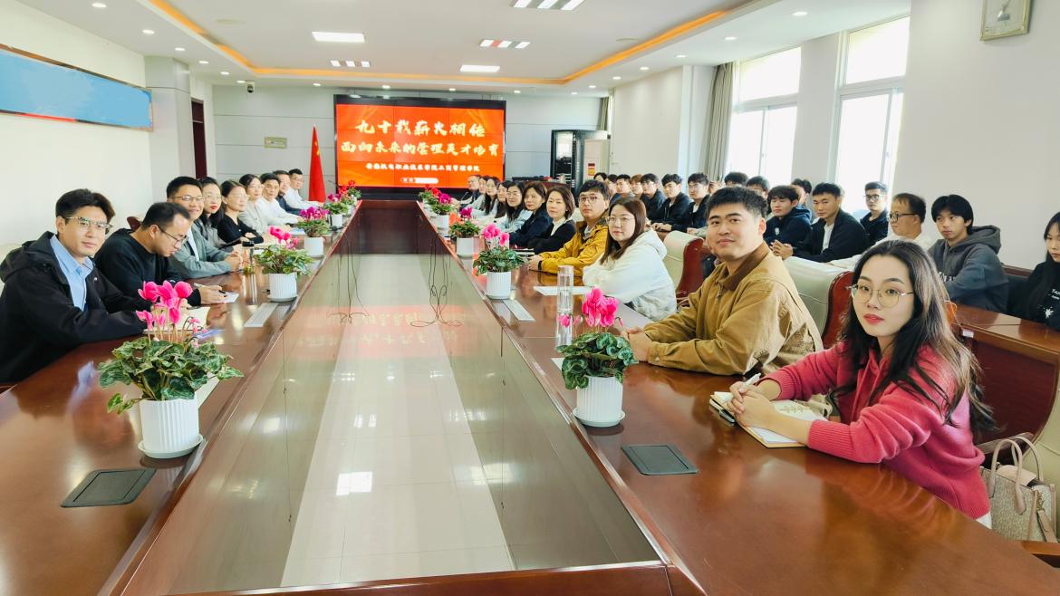 时值我校九十华诞之际,为营造严谨求实的学术氛围,工商管理学院于10月24日下午在明德楼306会议室隆重举行主题为“九十载薪火相传,面向未来的管理英才培育”学术论坛。论坛荣幸邀请到芜湖同泰智能物流园有限公司总经理、学院省级产业教授张腾,以及校继续教育学院院长、管理学博士徐园园两位嘉宾莅临讲学。院长吴邦雷、教学副院长沈宏及部分师生代表出席活动,论坛由学院科研主任孙晴主持。