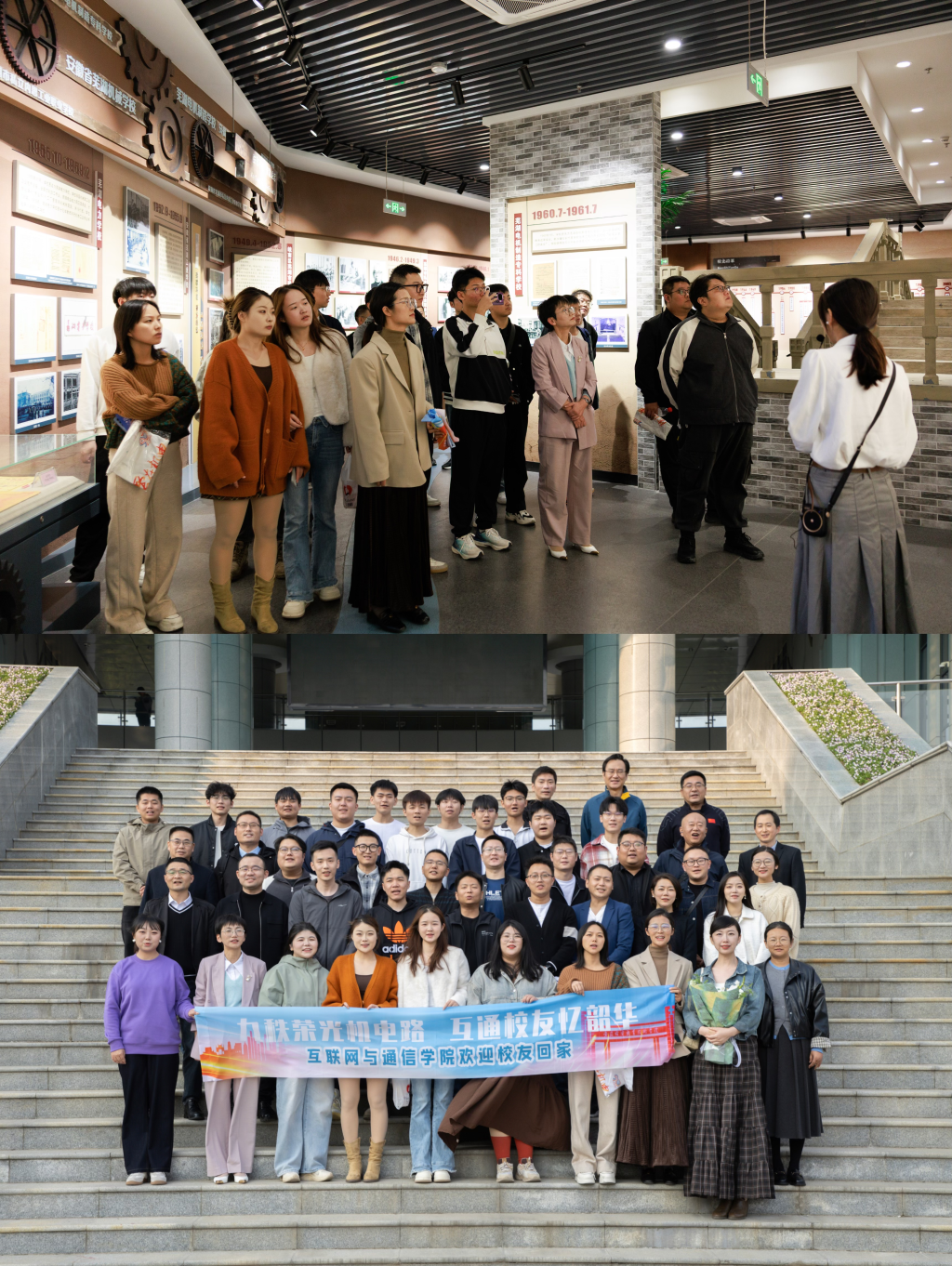座谈会后,校友们在学院副院长潘涛陪同下,先后参观了互联网与通信学院实验实训中心和校史馆。实验实训室内,老师们现场演示了最新的网络通信技术设备与智能制造成果,校友们驻足观看,惊叹于学院教学条件的飞速提升:“当年我们只能靠书本想象的技术,如今已在这里变成了触手可及的现实!”