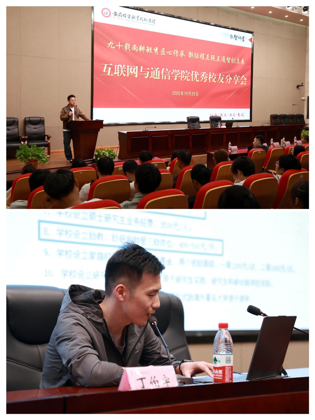金秋十月,丹桂飘香。正值安徽机电职业技术学院九十华诞之际,互联网与通信学院于10月25日隆重举办了以“九秩薪传 互联未来”为主题的校友返校活动。学院党政领导班子、教研室主任、教师、辅导员及历届校友代表齐聚一堂,共同回顾学院发展历程,畅谈校友深情厚谊,展望未来美好前景。