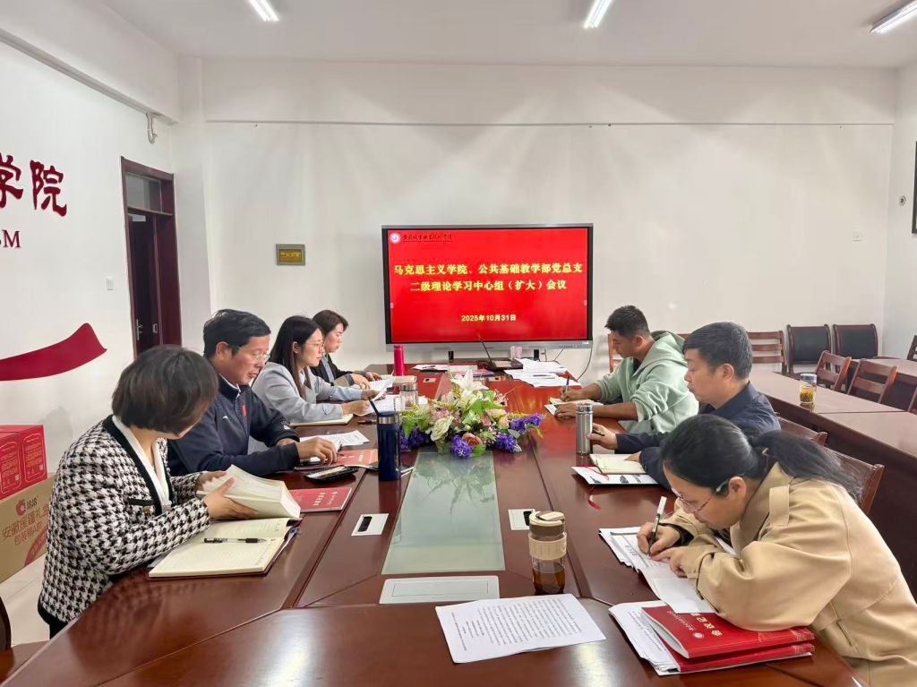 10月31日,马克思主义学院公共基础教学部党总支召开二级理论学习中心组(扩大)专题学习研讨会,深入学习贯彻党的二十届四中全会精神。党总支委员、党政领导班子成员、全体党支部书记参加会议,会议由党总支书记黄俊霞主持。