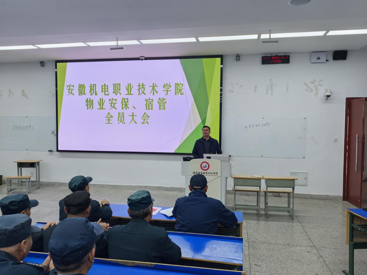 为进一步提升学校物业安保和宿管人员工作能力和服务水平,10月31日上午,校园安全管理处在三号教学楼3105教室组织召开物业安保、宿管全员大会。校园安全管理处全体职工、物业项目驻点负责人,安保、宿管全体员工,消防维保、安防运维服务单位驻校负责人,新一届全体治安信息队全体成员参加会议。会议由校园安全管理处周伟老师主持。