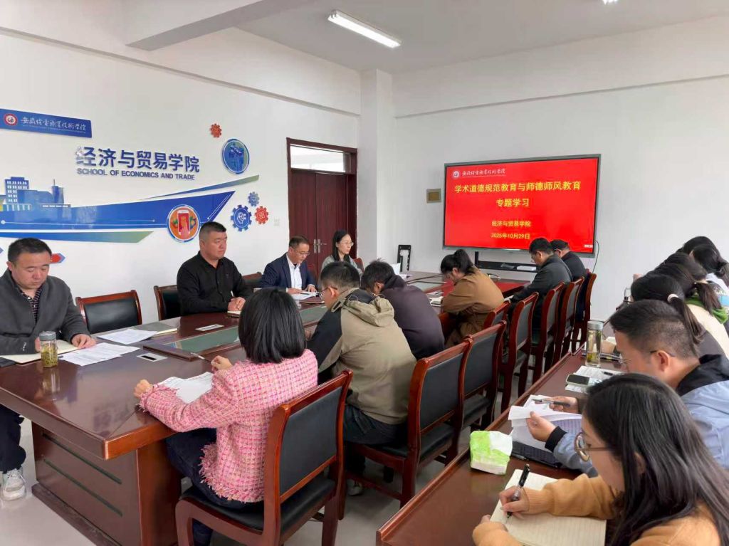 10月29日,经济与贸易学院在明德楼222会议室召开全体教师大会,深入学习贯彻党的二十届四中全会精神,以政治学习为引领,统筹推进师德师风建设,部署近期重点工作。会议由学院党总支副书记张灿东主持。
