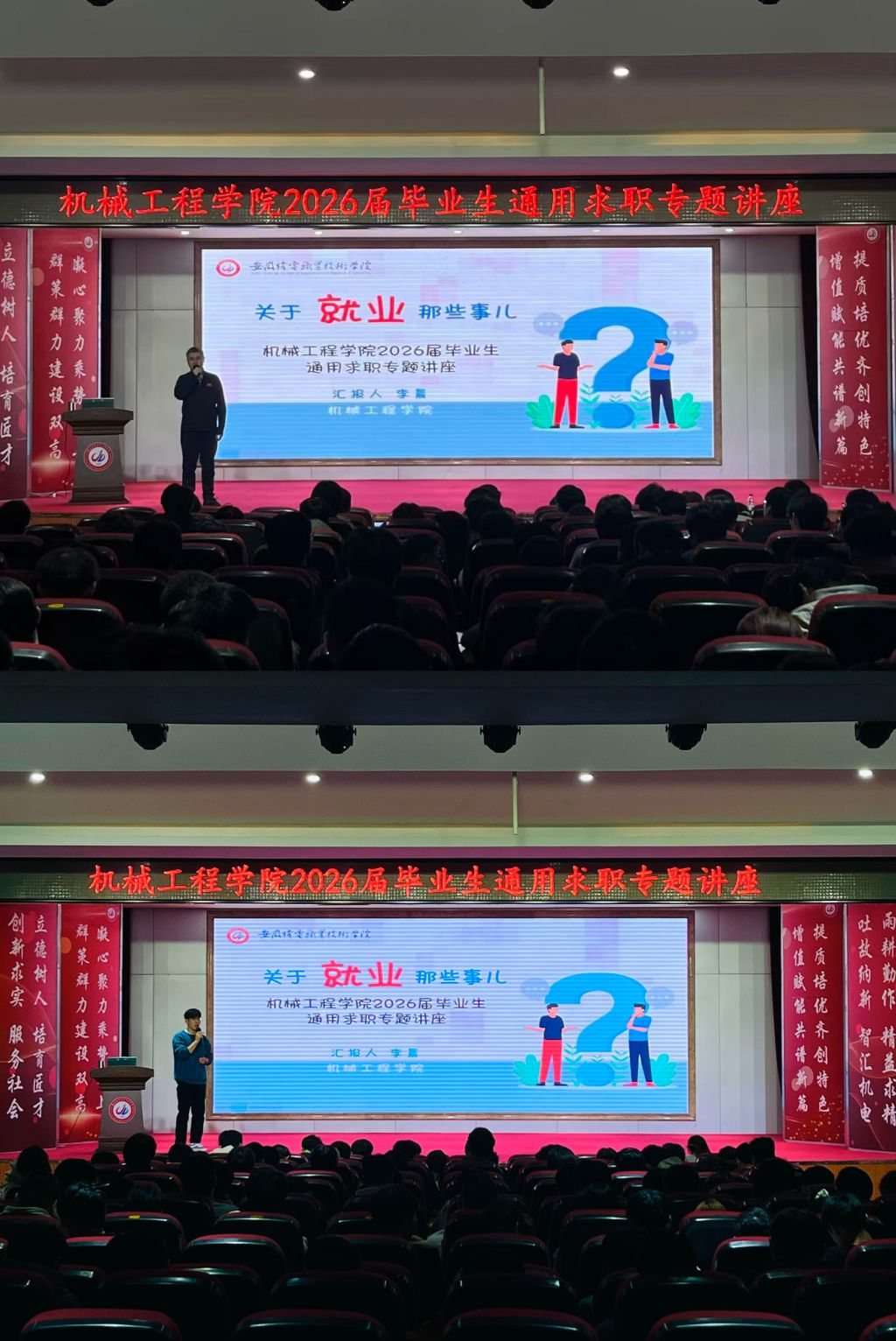 为深入贯彻落实立德树人根本任务,将思想政治教育贯穿就业工作全过程,切实做好毕业生就业服务工作,11月6日,机械工程学院面向2026届毕业生开展了“通用求职技巧”专题讲座。学院党总支副书记杨磊、学院2026届全体毕业生、专职辅导员邹传娟、韩俊丽参与讲座,由学院就业专项负责人李晨主持。