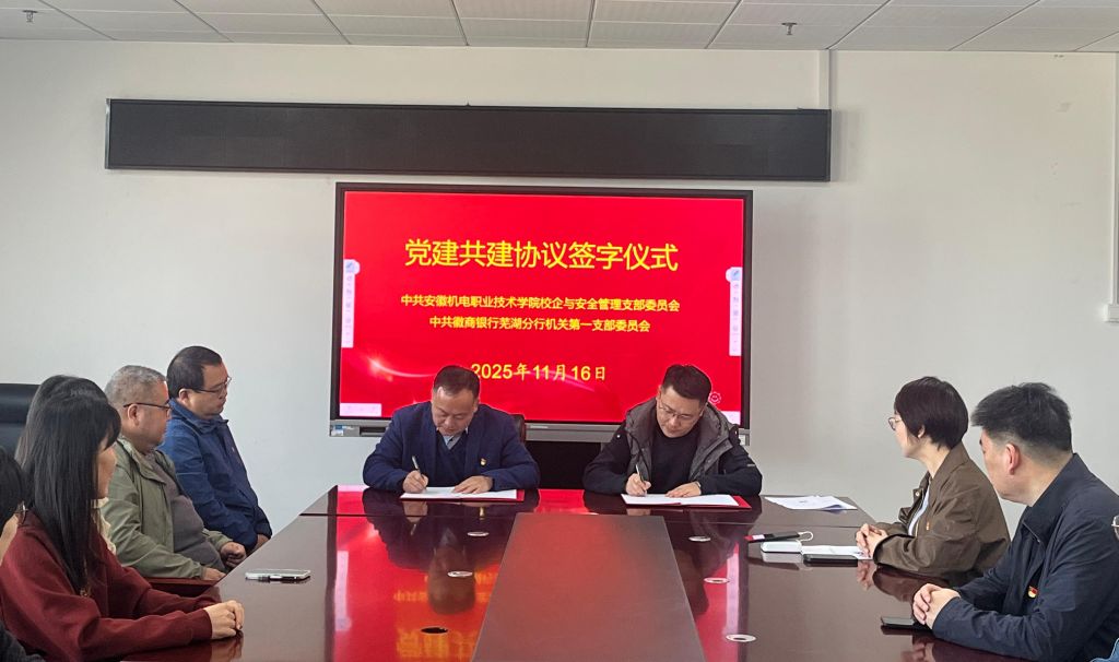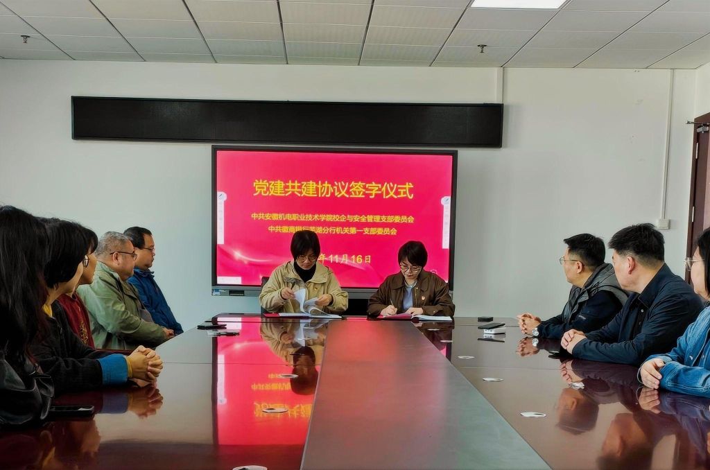 11月16日,机关第三党总支所属校企与安全管理党支部、财务处党支部,与徽商银行芜湖分行机关第一党支部、中山南路支行党支部共同举行党建共建签约仪式,并联合开展红色主题教育活动。