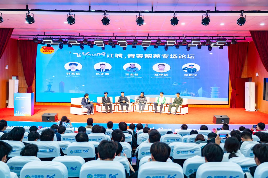 在“飞young江城”青春留芜圆桌对话环节中,来自芜湖美的厨卫电器制造有限公司人力资源部部长王金柱,2017级校友芜湖星探互娱网络科技有限公司创始人昂正鑫,2021级校友信义光伏产业控股有限公司销售经理赵梓明,2020级校友现就读于安徽工业大学自动化专业李振宇,2023级在校学生第十五届创青春大赛获奖选手韩家瑞等优秀校友和企业代表进行交流分享。活动现场,从就业、创业、升学等不同方向与在场青年学子真诚分享在芜学习成长、就业创业的感悟与建议,并发出“紫云英花开,芜湖等你留下来”的诚挚邀约。
