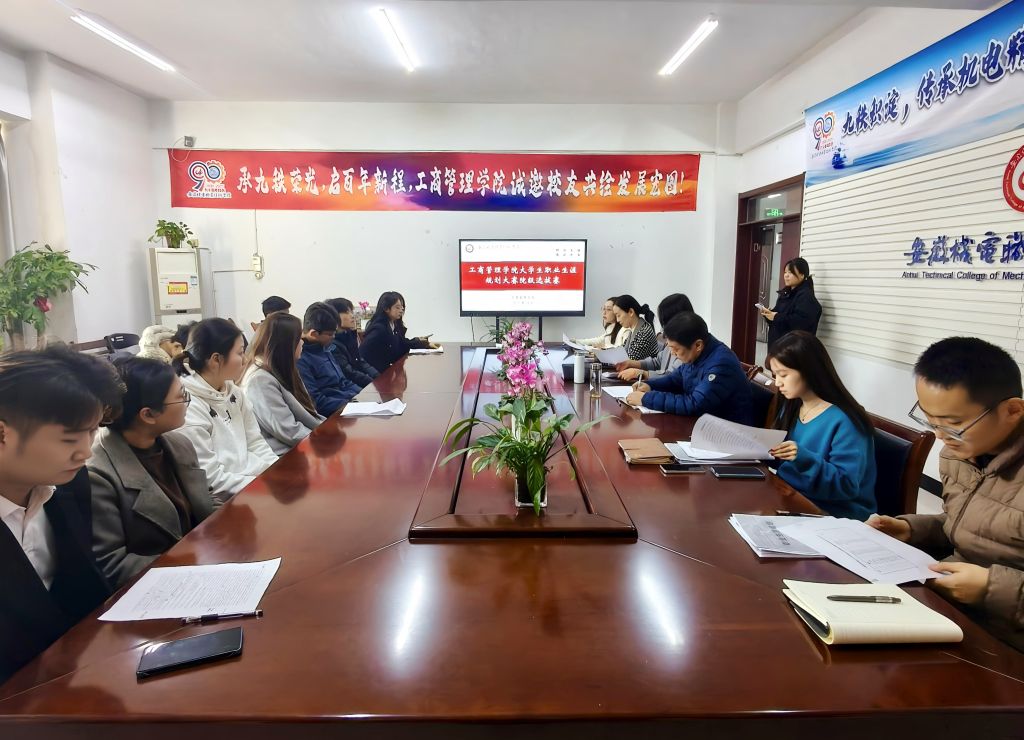 为进一步加强大学生生涯发展教育与就业指导服务,增强学生职业规划与自主发展能力,推动实现更高质量和更充分就业,11月21日,工商管理学院在明德楼319会议室成功举办大学生职业生涯规划大赛院级决赛。工商管理学院党总支书记丁霁明,党总支副书记王云霞,党政办公室主任陶丽,分团委书记章建业,辅导员王吉慧、李晨担任评委,共有10名学生参赛。