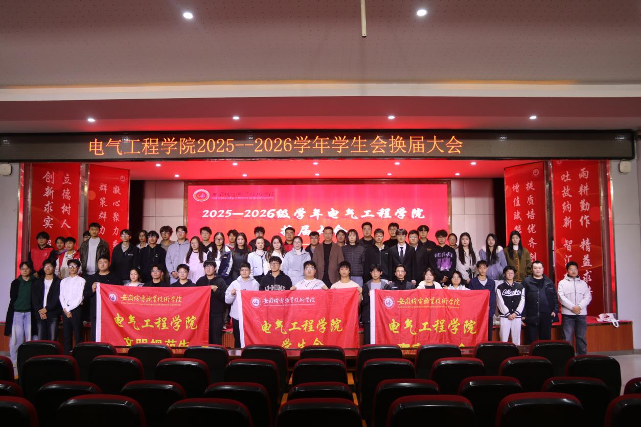11月25日下午,电气工程学院在明德楼报告厅举行了2025-2026学年学生会换届大会,此次大会标志着学院学生组织的新老交替,也预示着新一届学生会将肩负起更多的责任与使命。党总支副书记王先、团委书记朱伟伟以及辅导员王欣、周梅、吴帅、潘昕、吕婧以及学生组织所有成员出席了此次换届大会。