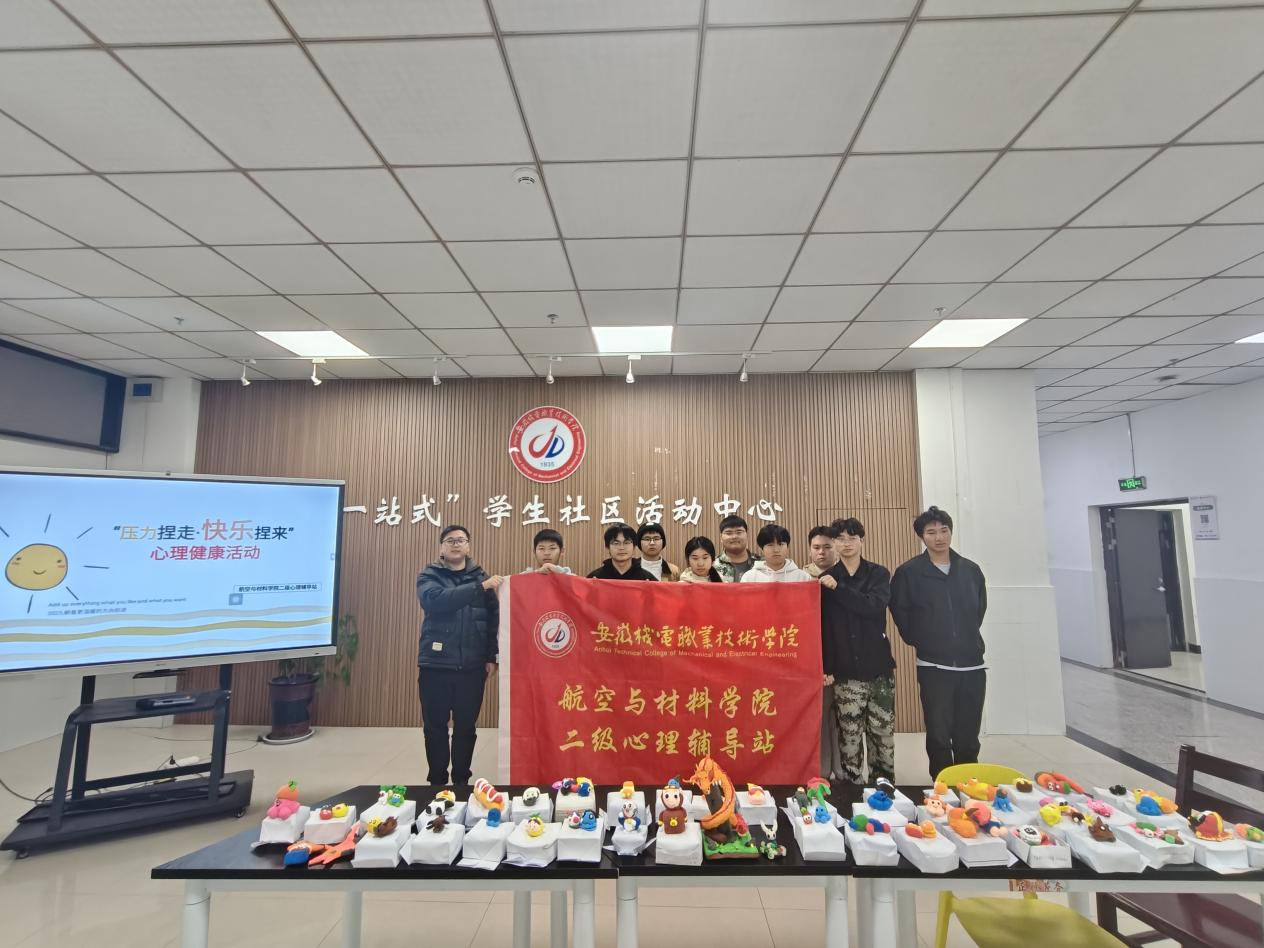 为落实立德树人根本任务,发挥美育丰富精神、温润心灵作用,11月25日,知行社区举办“压力捏走,快乐捏来”心理健康活动。此次活动以趣味捏塑为载体,旨在通过指尖创作为学生们搭建起情绪释放的温暖平台,吸引了航空与材料学院众多学生参加,共收到创意作品50余件。学院二级心理站辅导员陈康老师参与指导。