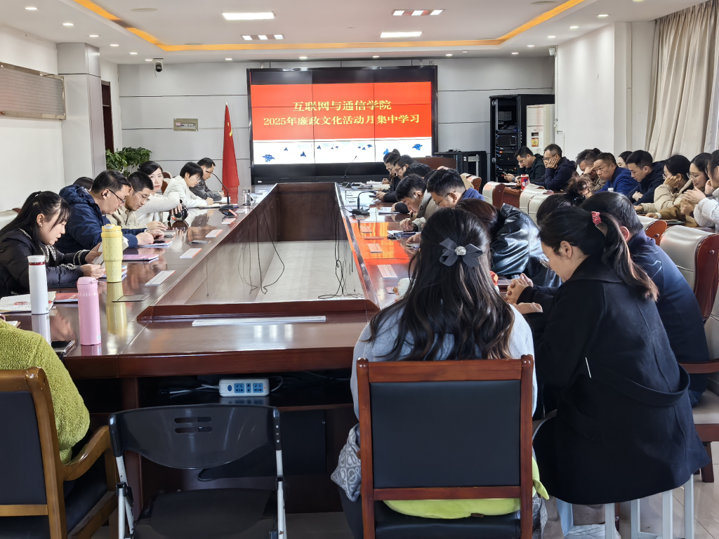 为深入学习贯彻党的二十届四中全会精神,11月26日下午,互联网与通信学院党总支在明德楼306会议室举办廉政文化活动月系列活动。总支全体教师参会,党总支书记王蓉主持会议。