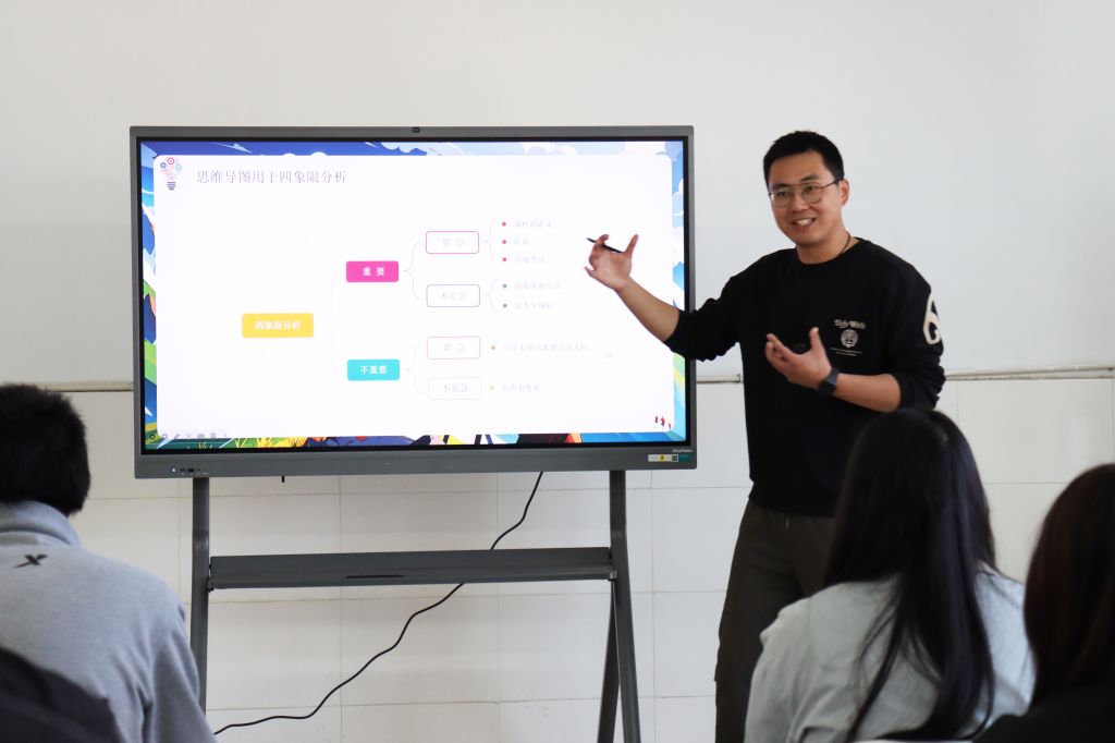 讲座伊始,戴尧向在场学生阐述了思维导图在学习和生活中的重要性,强调其作为梳理思路、优化逻辑的实用工具,能有效帮助大家提升学习效率与问题解决能力,引发了学生们的浓厚兴趣。随后,他系统讲解了思维导图的核心概念、构成要素、绘制原则及常用方法,并结合学习规划、知识点总结、论文框架搭建等不同场景的实例,直观展示了思维导图的应用价值,通过清晰的图示和通俗的讲解,让原本抽象的理论变得通俗易懂。在此基础上,戴尧结合问题思考、任务拆解、团队协作方案设计等具体问题案例,引导学生们运用刚学到的知识进行现场梳理和分析,针对案例中的关键逻辑节点进行深度剖析,帮助学生们进一步理解如何运用思维导图破解实际问题,现场互动氛围热烈。