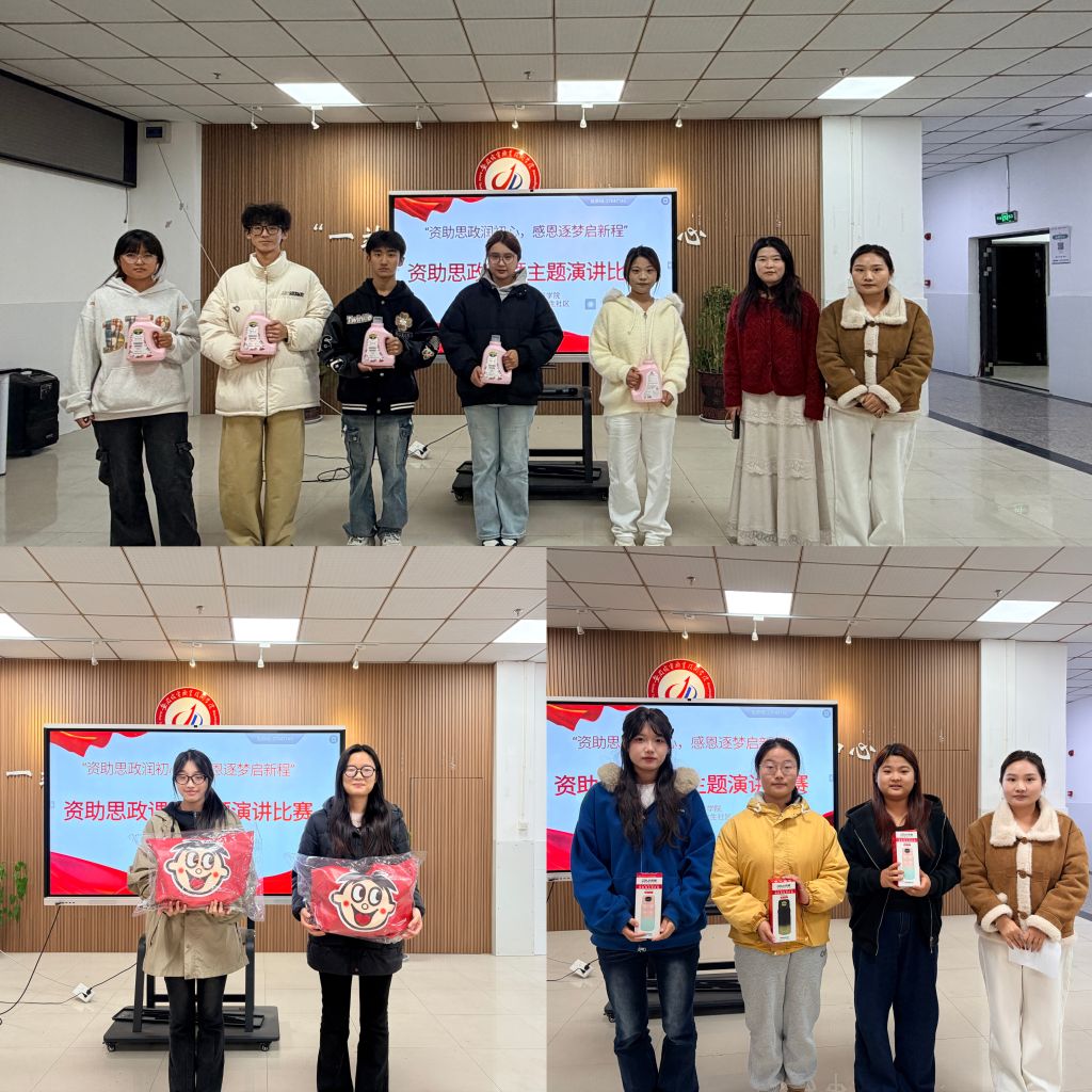思政课结束后,演讲比赛正式拉开帷幕,同学们以亲身经历为蓝本,用真挚语言讲述资助政策带来的温暖与改变。有的分享国家助学贷款如何为家庭减负,让自己安心求索;有的讲述助学金激励下,从学业迷茫到斩获奖学金的蜕变;还有的提及受助后投身志愿服务,以行动传递爱心的故事。真挚的情感与鲜活的细节,多次引发全场共鸣,掌声此起彼伏。按照各位选手的表现,最终评选出一、二、三等奖及优秀奖,并分别进行颁奖。
