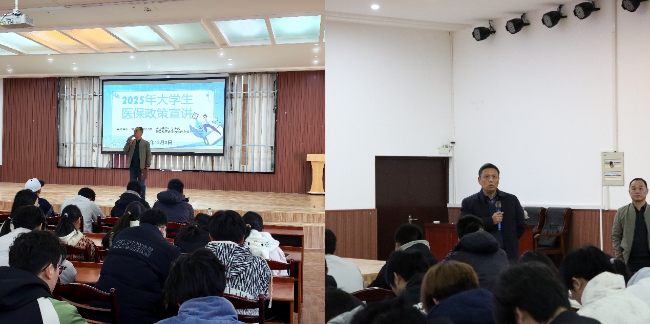 为切实保障我校学生的医疗健康权益,提升学生对国家医保政策的知晓度和利用率,2025年12月3日下午,校学生处联合繁昌校区建设与管理办公室,特邀繁昌区医保分局专家走进繁昌校区,为近300名学生举办了一场内容详实、贴近需求的城乡居民基本医疗保险政策专题宣讲会。繁昌校区建设与管理办公室副主任沈则亮与学生处相关工作人员参加了此次宣讲。