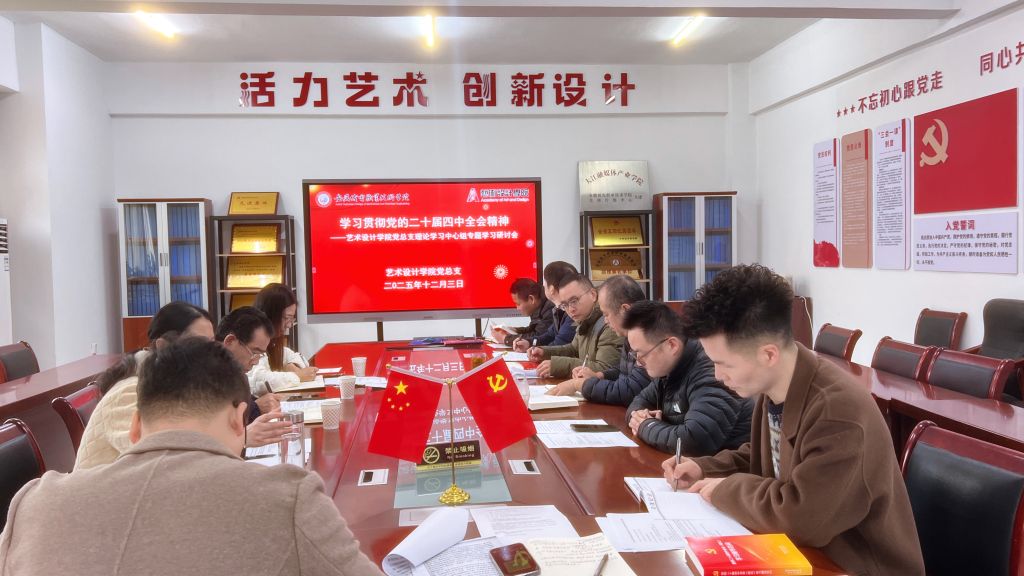院长陈旺领学习近平总书记关于全面依法治国的重要指示,强调要将习近平法治思想融入艺术创作与教学管理。副院长陈代围绕习近平总书记广东考察重要讲话精神,提出推动“设计+产业”融合发展的思路。副书记王冬冬、纪检委员蔡晓骝等分别从立德树人、全面从严治党等角度,结合《党的二十届四中全会<建议>学习辅导百问》作专题解读,明确育人与治院的具体要求。