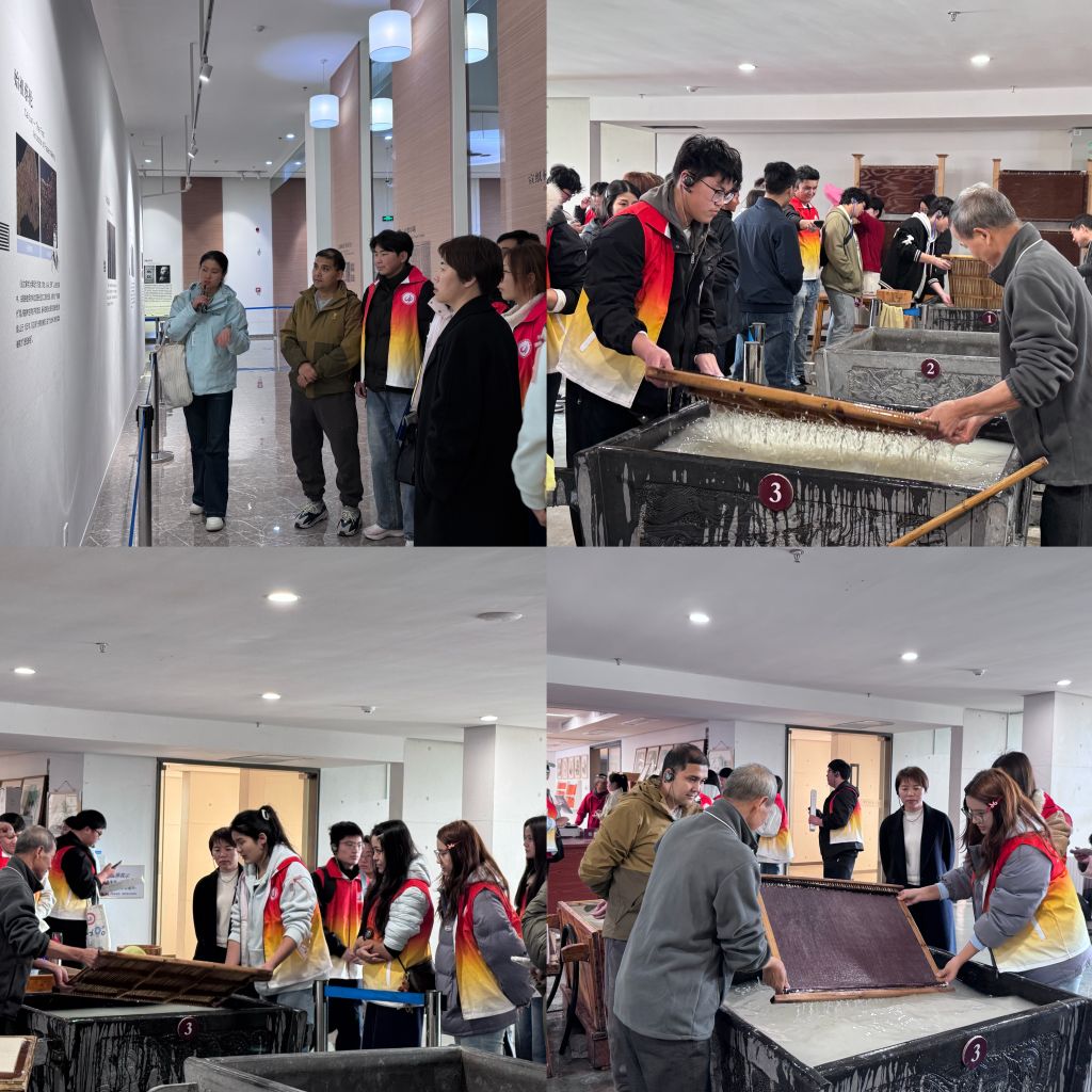 为创新思政育人形式,提升“大思政课”育人质量,12月3日下午,马克思主义学院副院长段丽华、教师杨梦园和学生处辅导员努尔兰江携石榴籽民族社团及青马社成员前往中国宣纸文化园,开展了一场以“品宣韵风华 承中华文脉”为主题的“行走的思政课”实践活动。师生们在领略“纸寿千年”的非遗技艺中,深切感悟中华优秀传统文化的博大精深,进一步铸牢中华民族共同体意识。