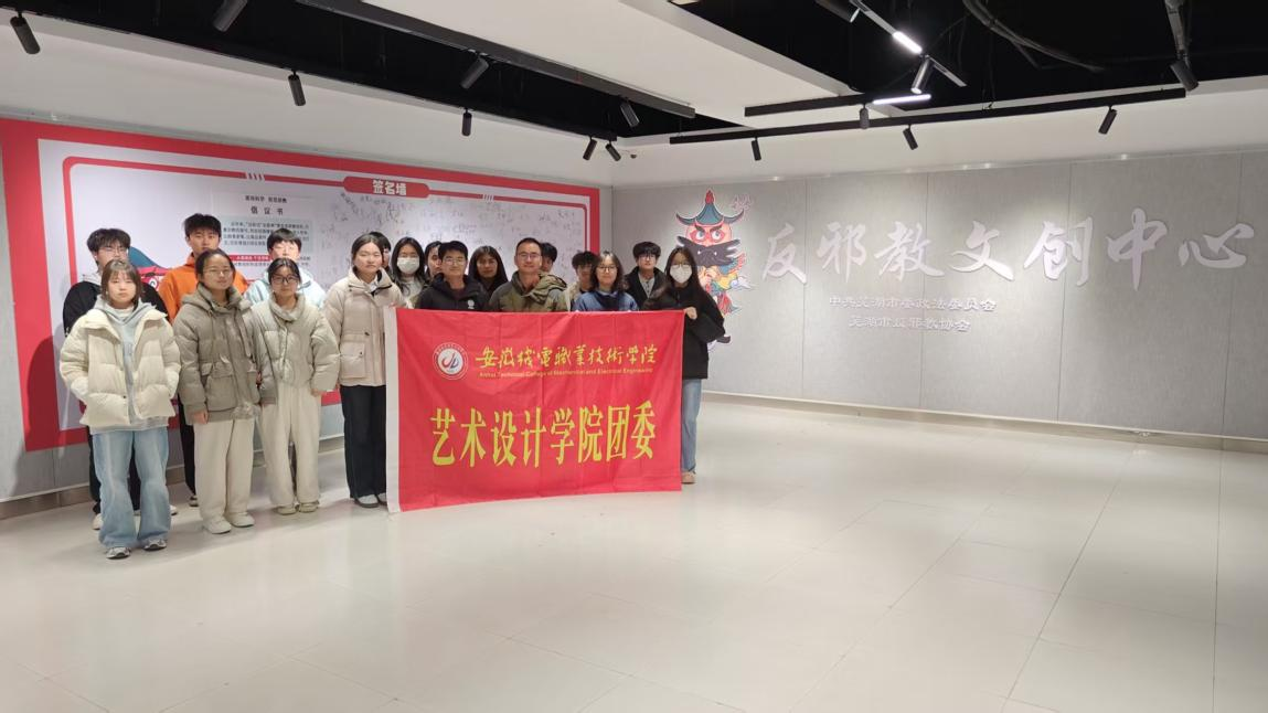 12月4日,艺术设计学院组织师生赴安徽商贸职业技术学院反邪教文创中心开展参观学习活动,学院党总支副书记王冬冬带队参加。本次活动旨在通过实地参观、交流学习的形式,进一步增强师生对反邪教文化建设的认识,深化思想政治教育成效,提升文化育人责任意识和美育浸润工作,促进立德树人机制综合改革院系建设。