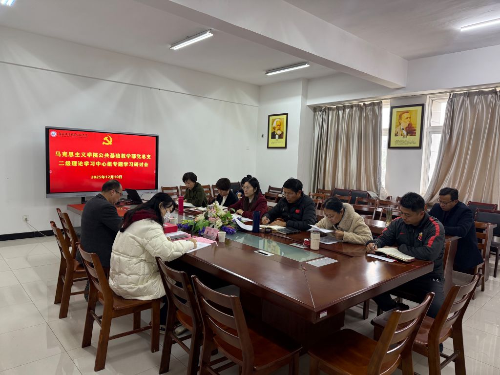 12月10日,马克思主义学院公共基础教学部党总支在明德楼419会议室召开主题为“在法治轨道上统筹发展与安全 在思想引领中凝聚奋进力量”的理论学习中心组专题学习研讨会。学工部(武装)部长、学生处处长王文浩、财务处综合科科长王恬到会列席旁听指导。理论学习中心组全体成员以及随机抽点的1名党支部书记参加会议。会议由党总支书记黄俊霞主持。
