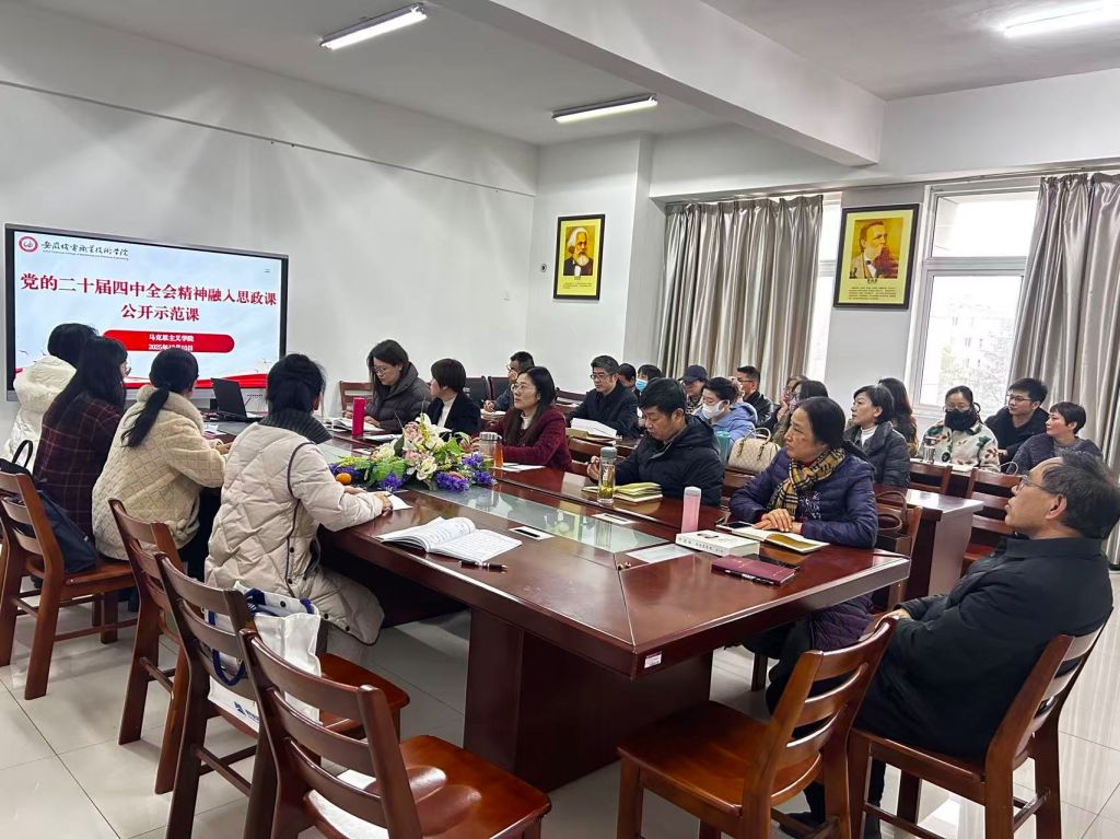 为深入学习贯彻党的二十届四中全会精神,推动党的创新理论与思政课教学深度融合,12月10日下午,马克思主义学院在明德楼419会议室成功举办公开示范课活动。马克思主义学院公共基础教学部党总支书记黄俊霞、马院全体教师参与观摩学习和交流研讨,活动由副院长段丽华主持。