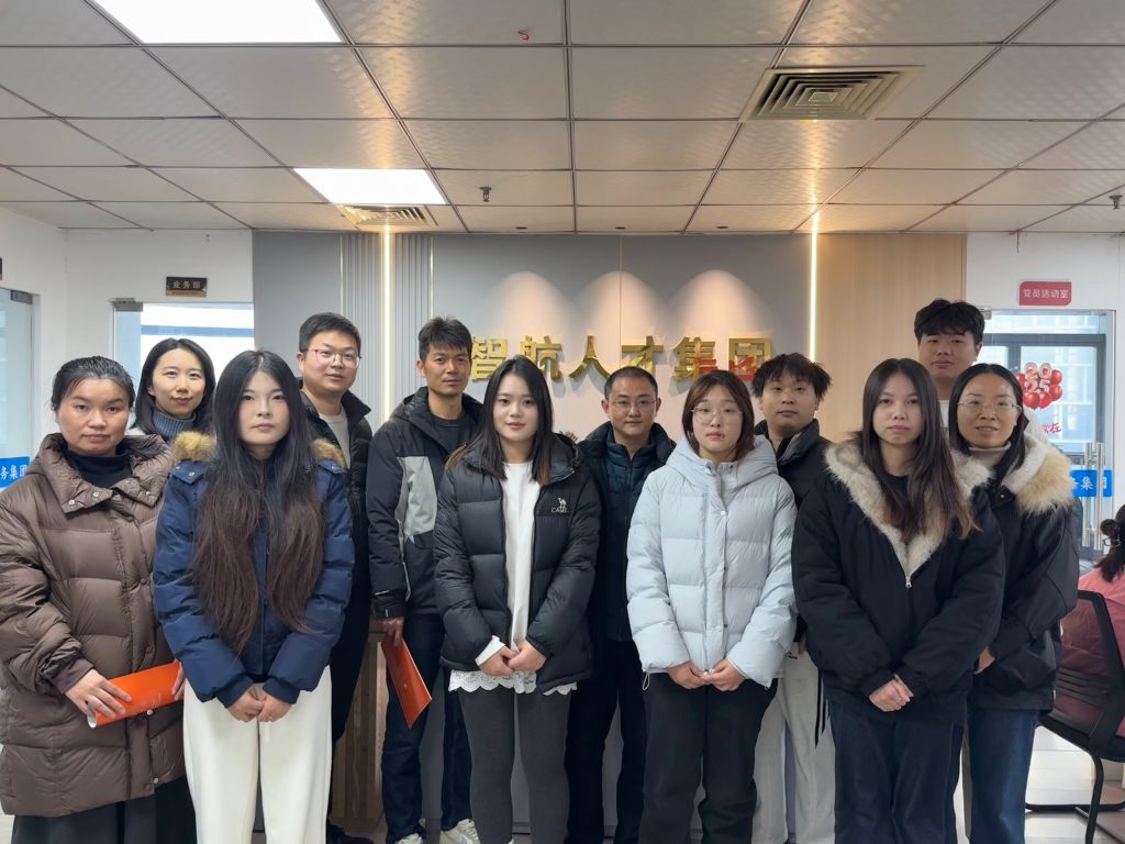 为进一步深化校企合作,深入了解学生岗位实习情况,12月16日,经济与贸易学院副院长李健、何赟,党总支副书记左雪红,指导教师彭永翠、黄筱琦前往安徽智航人才服务集团有限公司交流访问,亲切看望岗位实习学生。