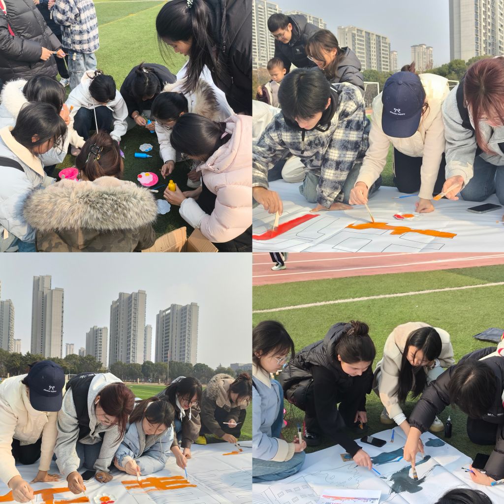 活动伊始,左雪红鼓励同学们挣脱思维束缚、大胆挥洒创意,将个人对青春的独特理解、对未来的美好憧憬倾注于笔墨色彩之中,充分展现同学们昂扬向上的朝气与活力。随着创作指令的发出,同学们即刻奔赴操场创作区域,迅速完成分工协作——有人专注勾勒主体轮廓,有人精心调配色彩明暗,有人细致填充画面细节,现场氛围热烈而有序。创作过程中,同学们不时交流想法、相互补色,原本互不熟悉的同学,在共同的创作目标与协作中迅速拉近距离、熟络起来,欢声笑语始终回荡在活动现场。